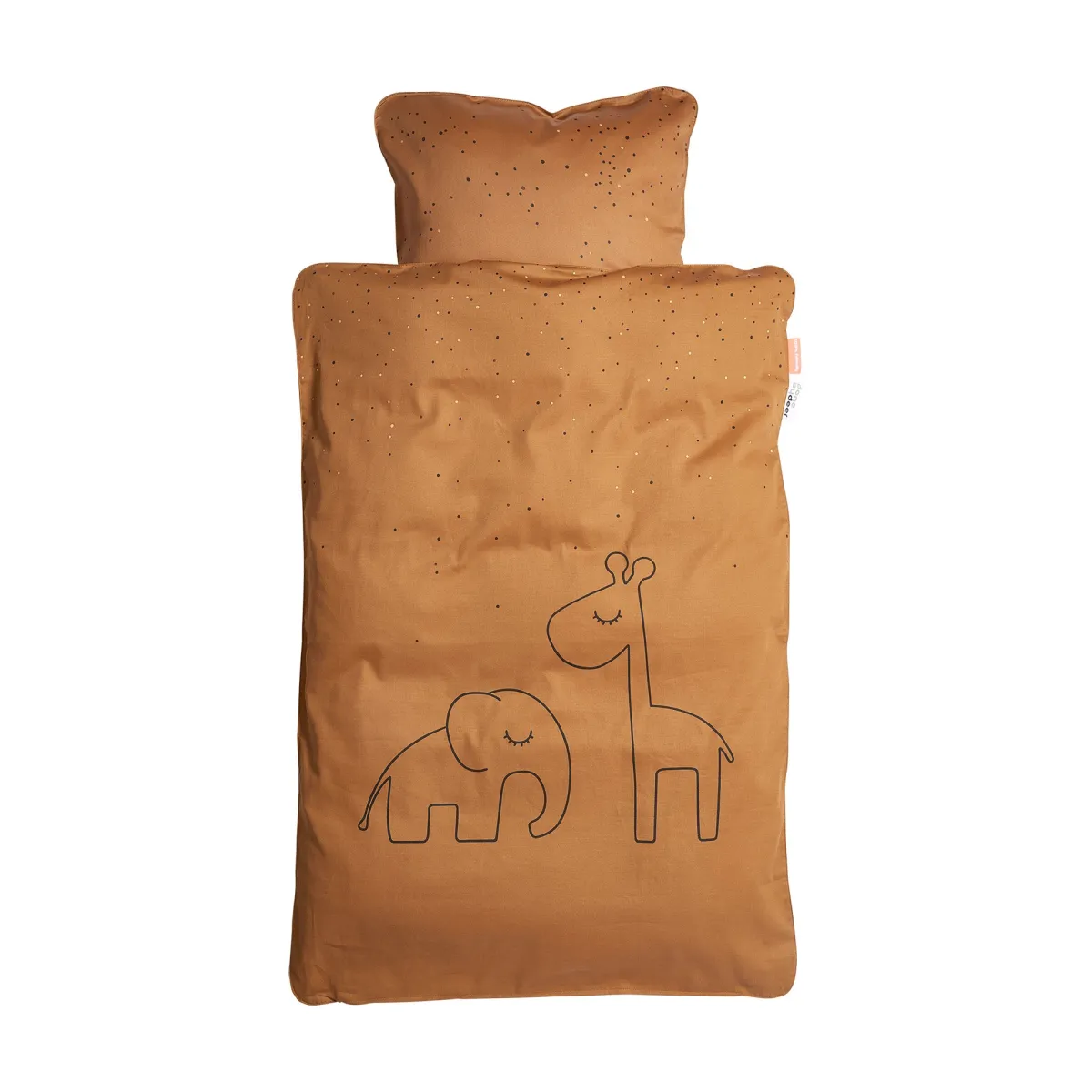 – Pakket i en lille tote bag i bomuld, der matcher sengesættet, og som kan bruges til legetøj, skiftetøj, sko eller andre praktiske formål