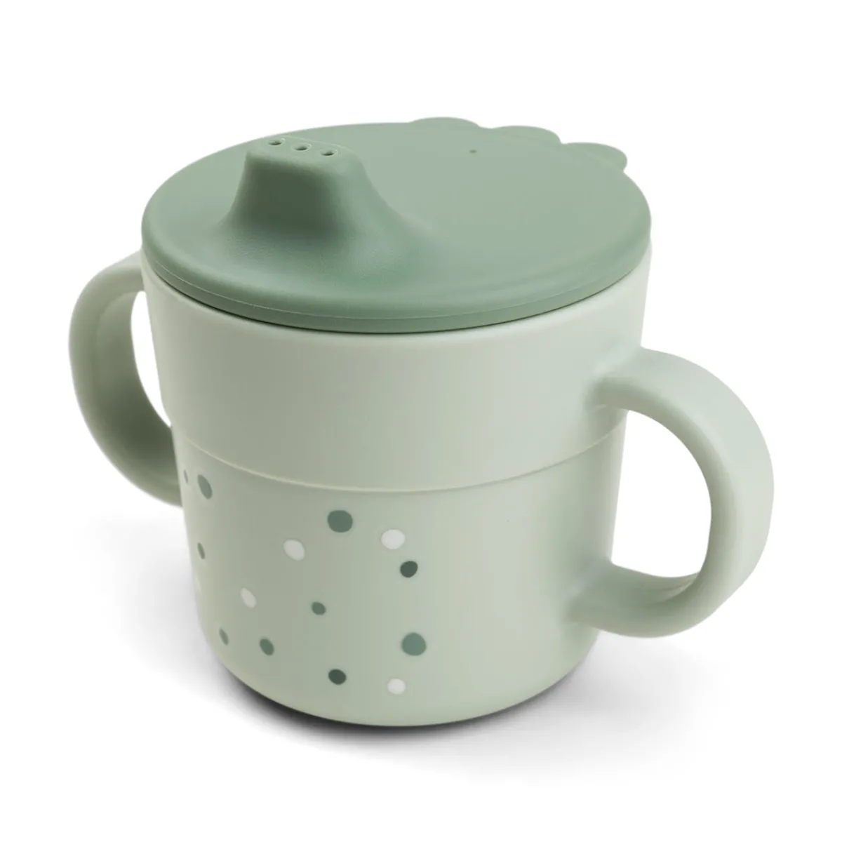 Den cool grønne kop med tud dækket af legesyge Happy dots vil lyse op i ethvert måltid. Dens silkematte overflade matcher resten af Foodie-kollektionen, og lågets mørkere grønne farve giver en fin tofarvet detalje.