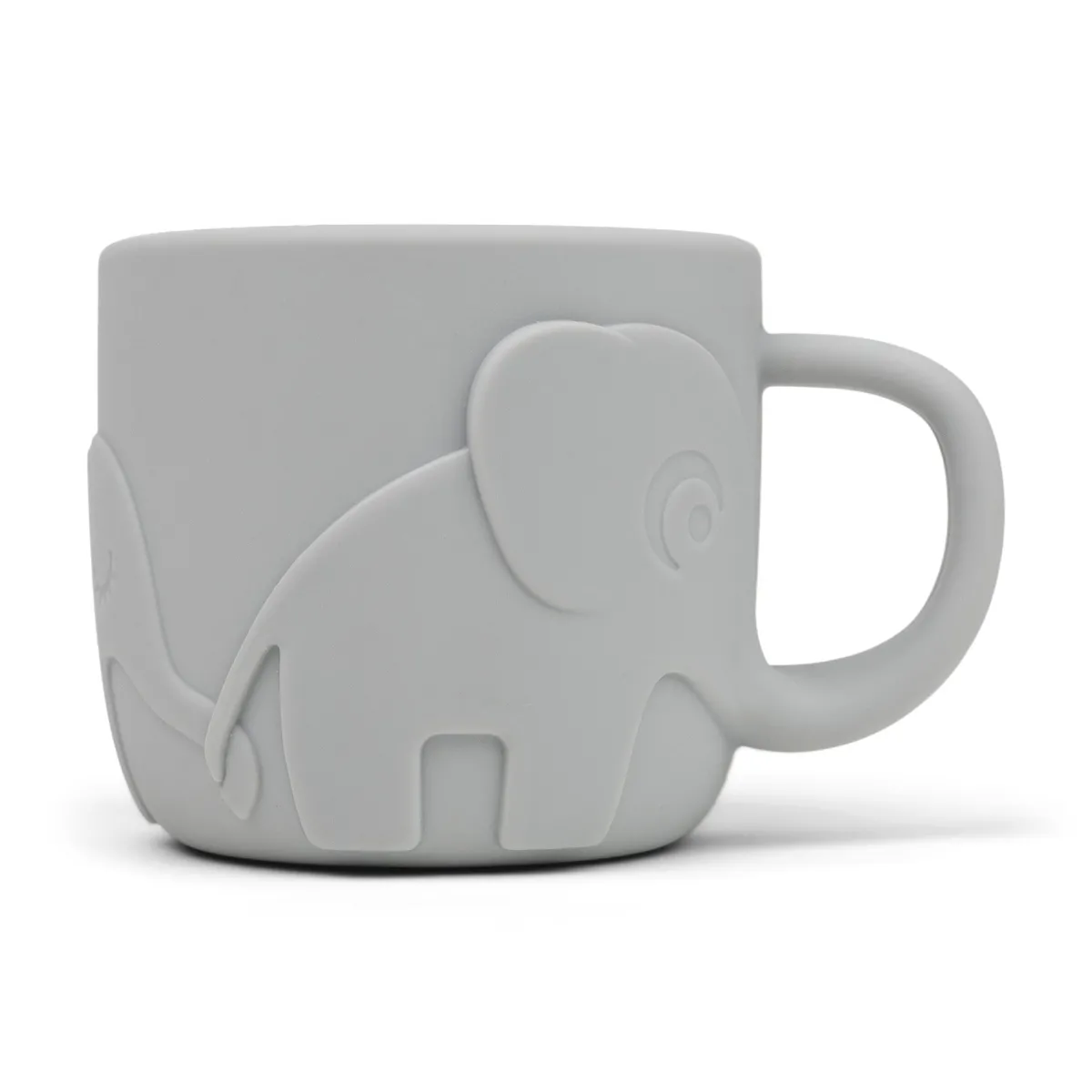 Den grå Peekaboo kop med en hank er en god kop for de mindste at holde om. Den er designet til at vække nysgerrigheden hos små spisere med de søde elefanter, der spankulerer rundt om koppen.