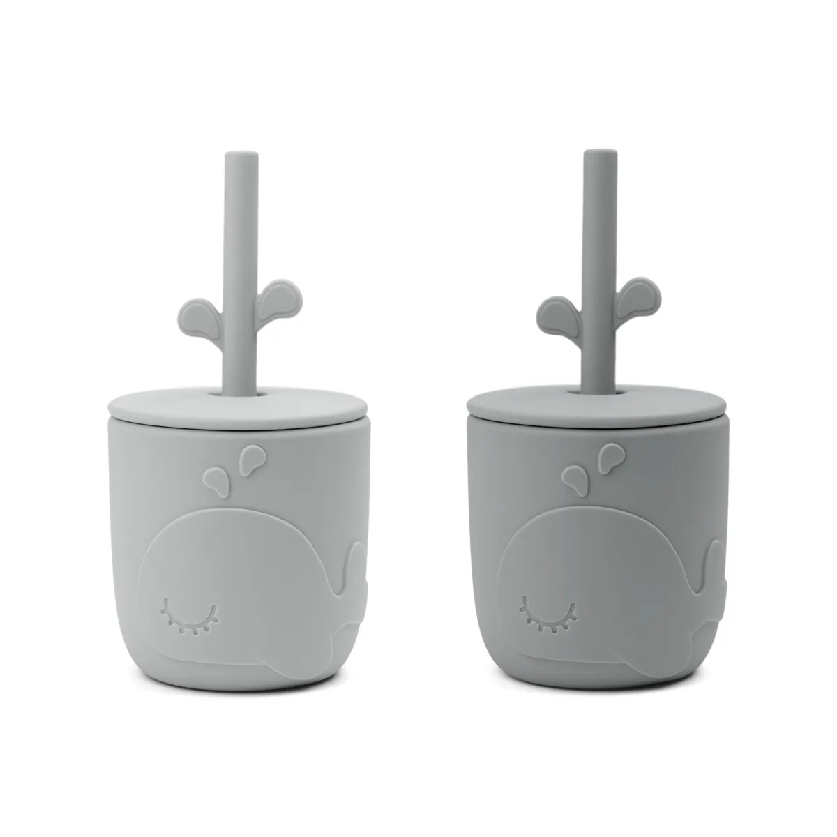 Kopperne med sugerør i 2-pak er i to nuancer af grå. De søde sugerør passer perfekt i alle små børns kopper uden at vippe, og lågene kan bruges til de Peekaboo tudkop. også.