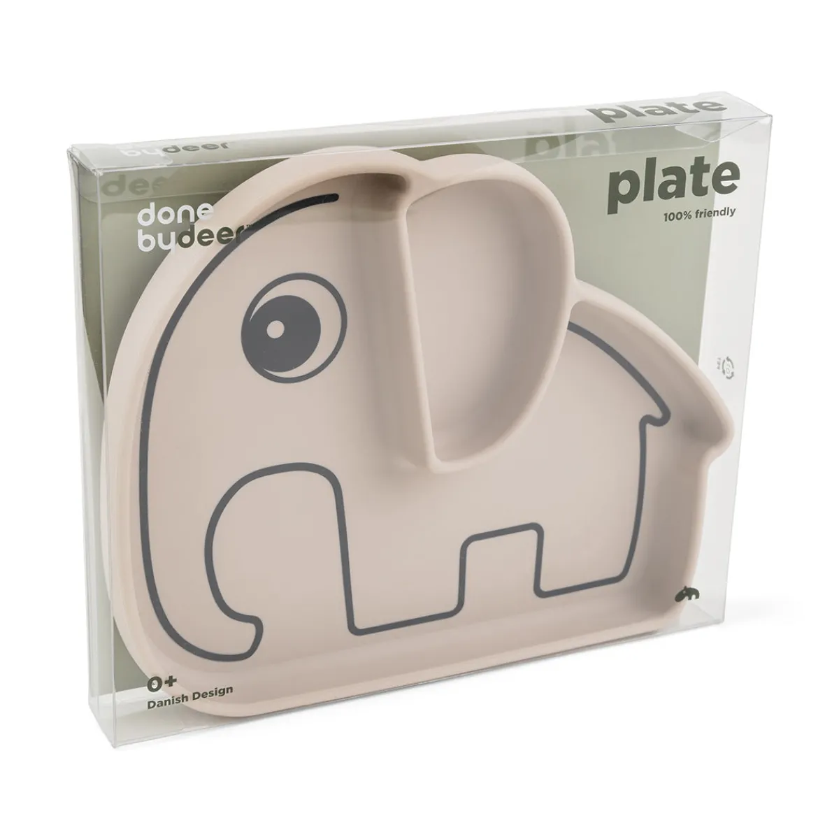 Vores bløde Silicone Stick&Stay tallerken – Elphee – Sand er fremstillet af 100 % fødevaregodkendt, BPA-fri silikone, hvilket gør den til en sikker spiseoplevelse for børn. Sugebasen forhindrer børn i at skubbe, tippe eller kaste med tallerkenen. Bag Elphees øre gemmer sig en flap, der er nem at løsne.