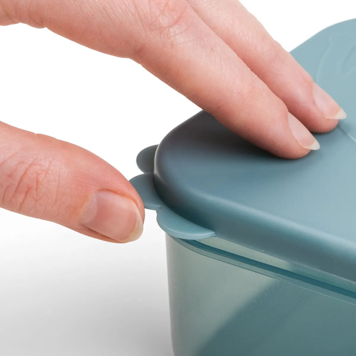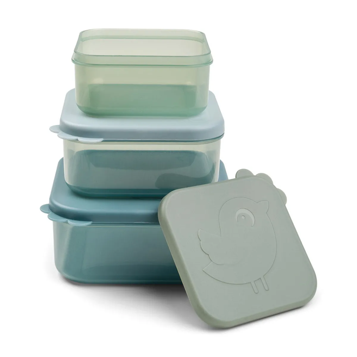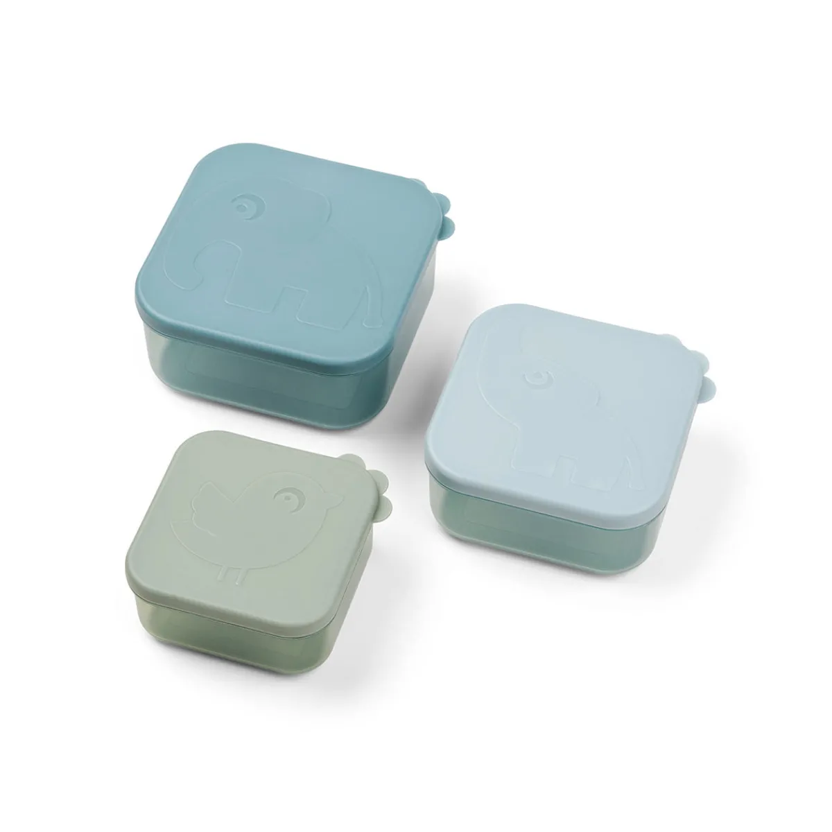 De søde Deer friends semitransparente snackbokse i forskellige toner af blå har et sødt præget motiv på låget.