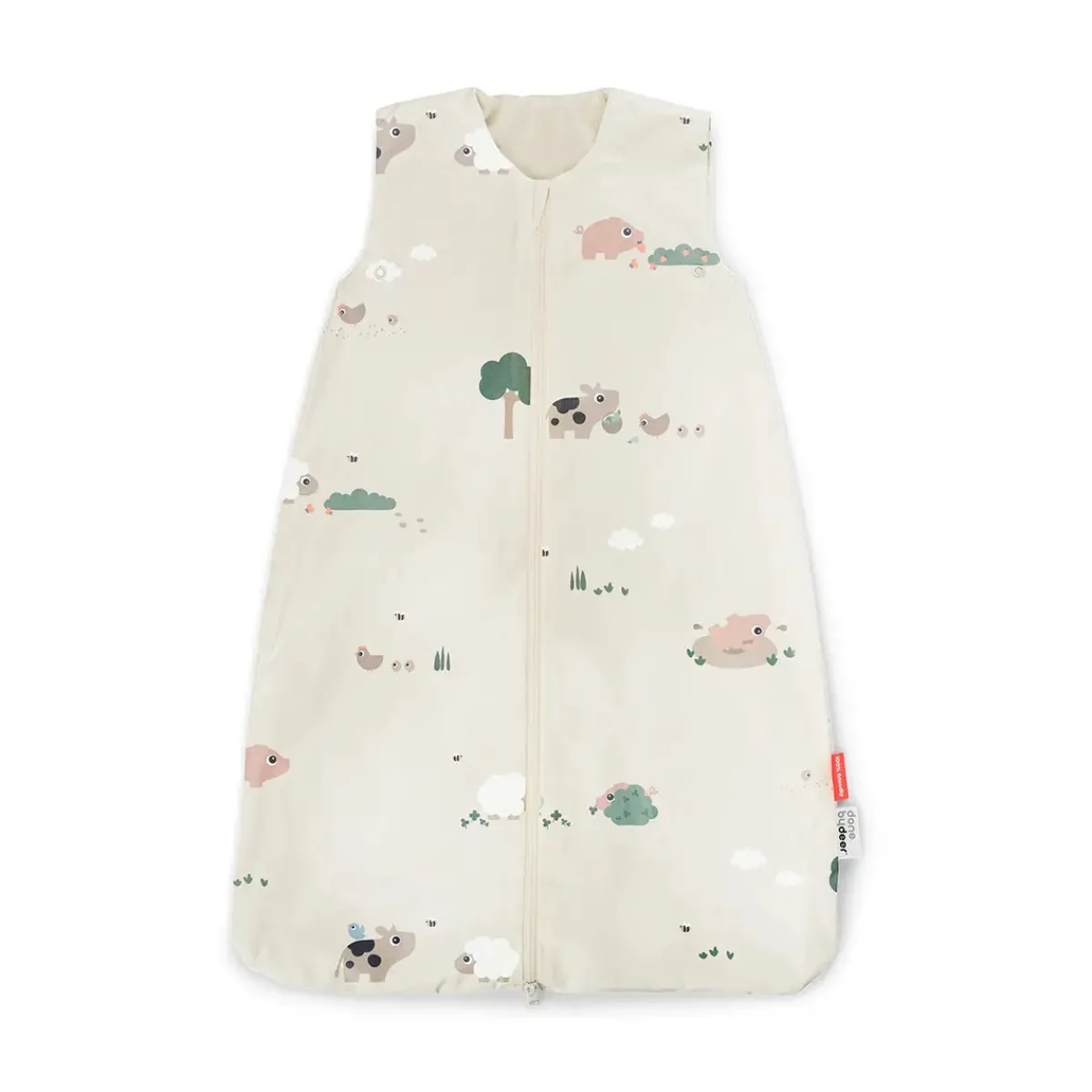 With a TOG value of 1.0, it’s perfect for warmer nights. The adjustable armholes ensure a customised fit, while the YKK safety zipper makes dressing and nighttime changes easy. In a soft sand colour with charming motifs of Dotti, Pigee, and Sheepy, this sleeping bag brings both comfort and cuteness to bedtime.