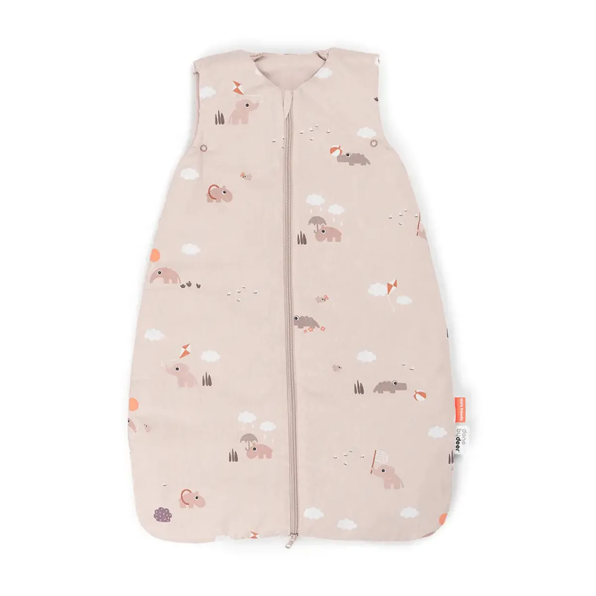 With a TOG value of 2.5, it’s ideal for colder nights. The adjustable armholes ensure a perfect fit, while the YKK safety zipper allows for easy dressing and diaper changes. In a cute powder colour with charming motifs of Antee, Croco, Elphee, and Ozzo, this sleeping bag adds a touch of sweetness to bedtime.