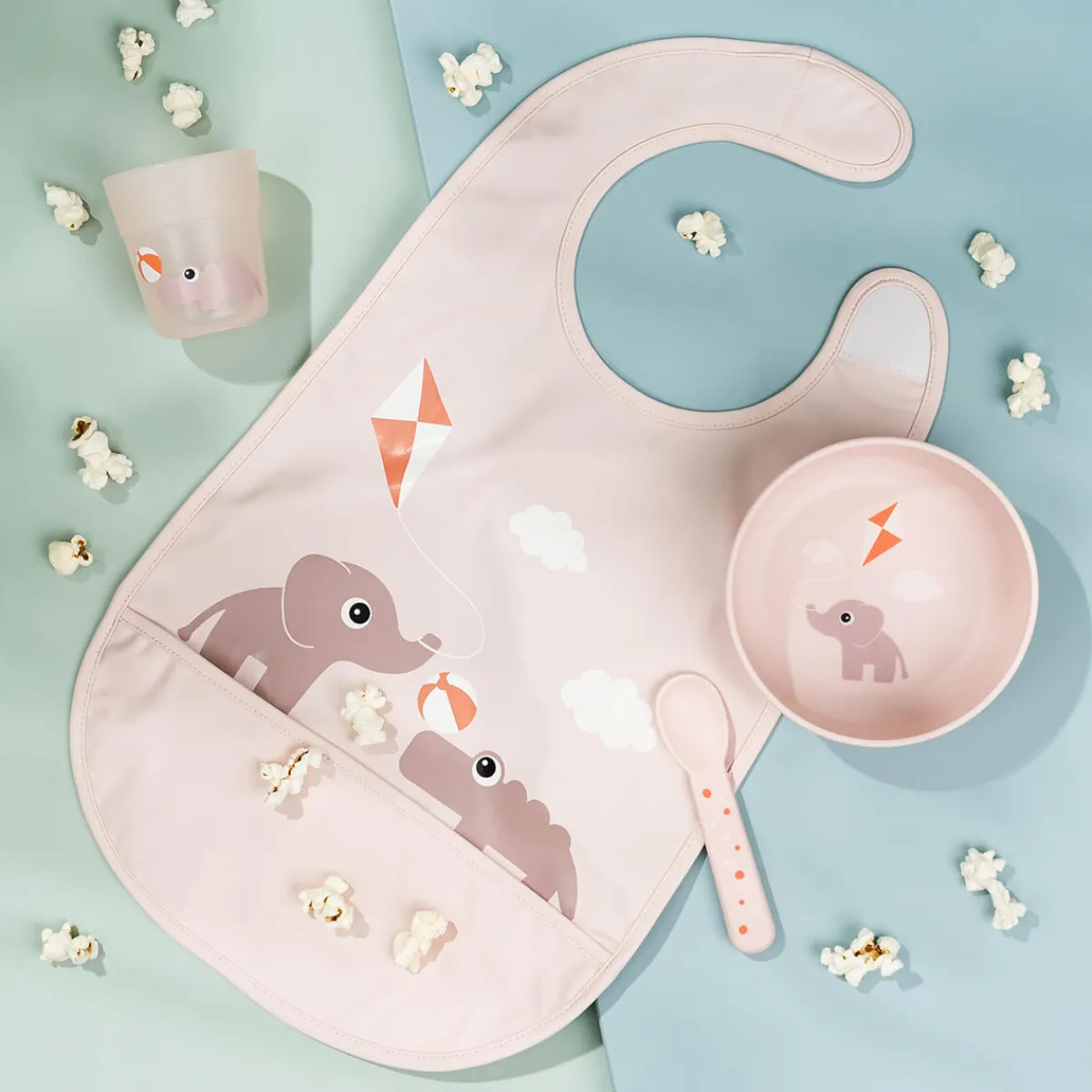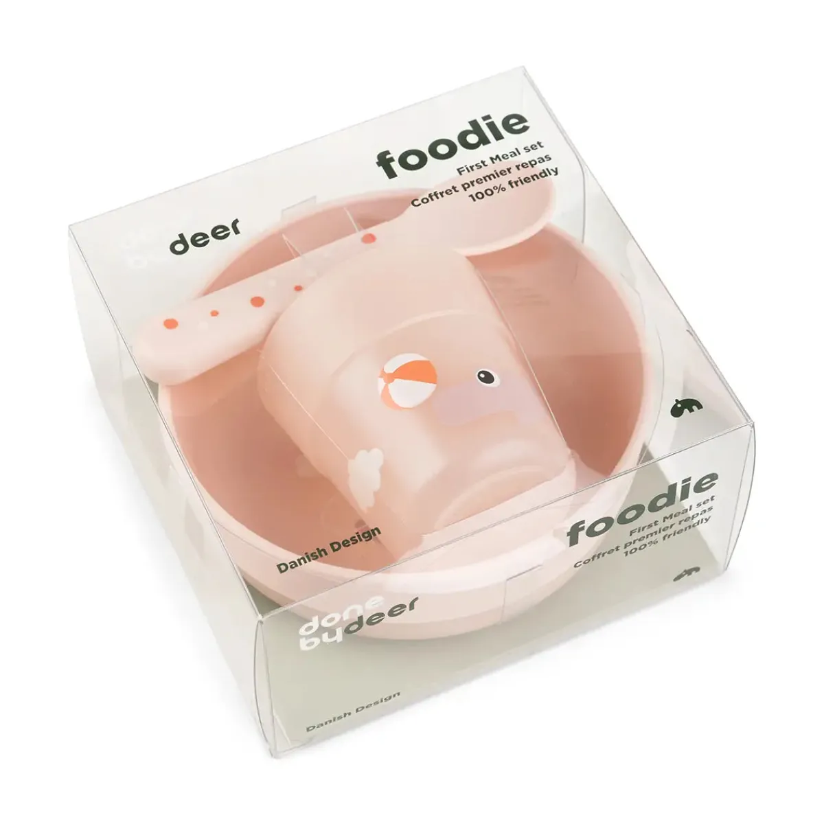 Dette pudderfarvede Foodie første spisesæt er perfekt til at introducere dit barn til dets første måltidseventyr. Sættet indeholder en skål, et halvgennemsigtigt minikrus og en spiseske, alt sammen i søde pudderfarver. Skålen har en skridsikker bund, så den står stabilt under måltidet, og Elphee og Croco tilføjer et legende touch.
