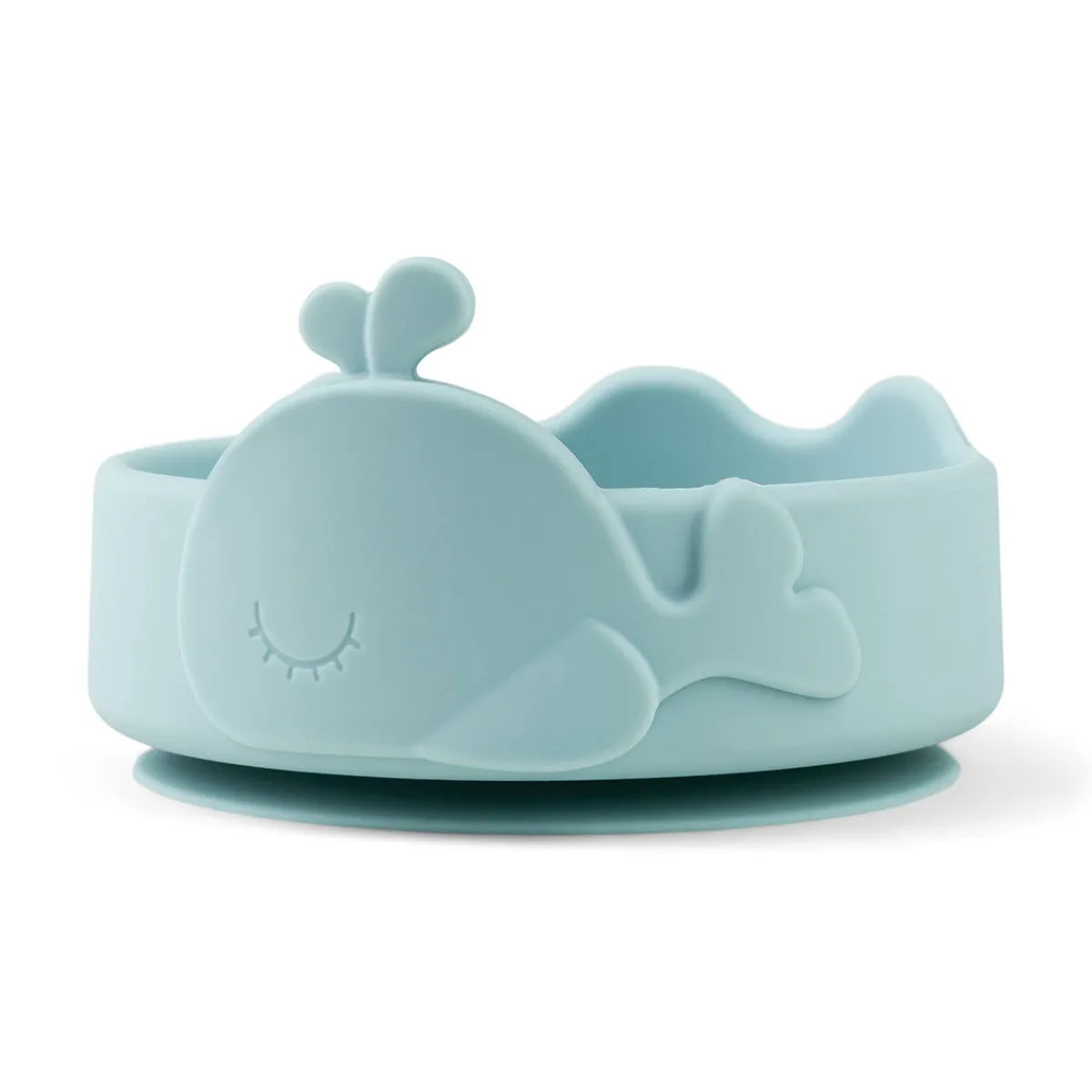 Silikone Stick&stay skålen og skeen er designet til, at små spisere kan udforske madens verden. Wally tager en svømmetur rundt om skålen, og halen på skeen er klar til at underholde ved at dykke ned i maden. Sættet har en perfekt størrelse til nye spisere.