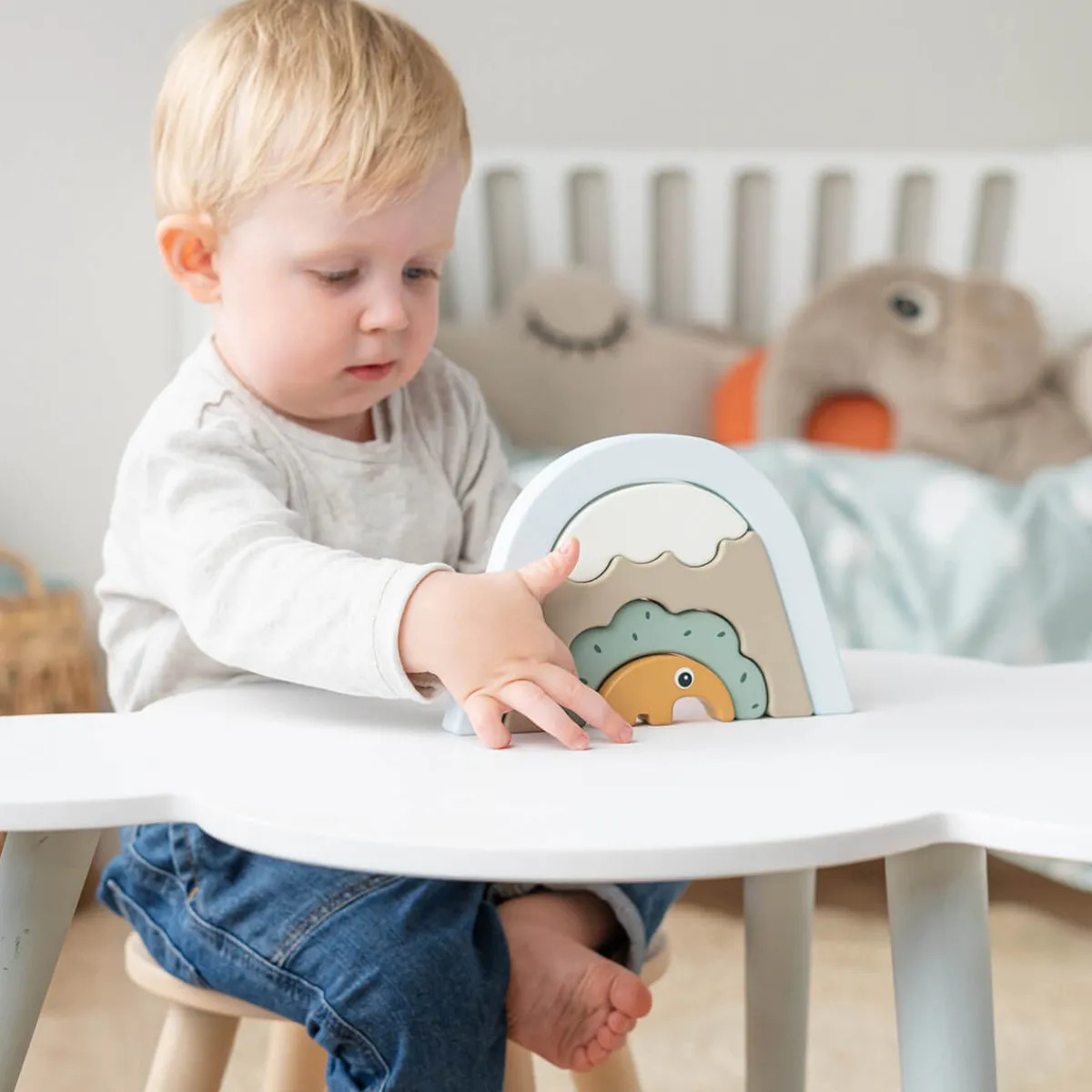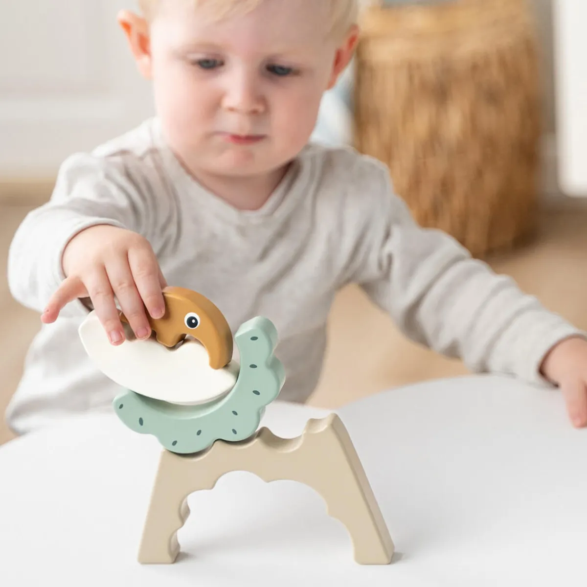Det er fremstillet af ansvarligt træ og malet med sikker, vandbaseret maling, så dit barn kan lege sikkert. Gør legen sjov og udfordrende med denne Stabletunnel, der fremmer både fantasifuld udforskning og tidlige problemløsningsevner.