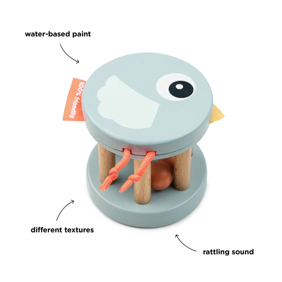 Trærangle – Birdee – Blå er designet i bløde blå toner med farverige detaljer. Trælegetøjet er lavet af ansvarligt indkøbt træ og malet med vandbaseret maling, der er fri for skadelige stoffer – hvilket gør det sikkert for dit barn at bruge.