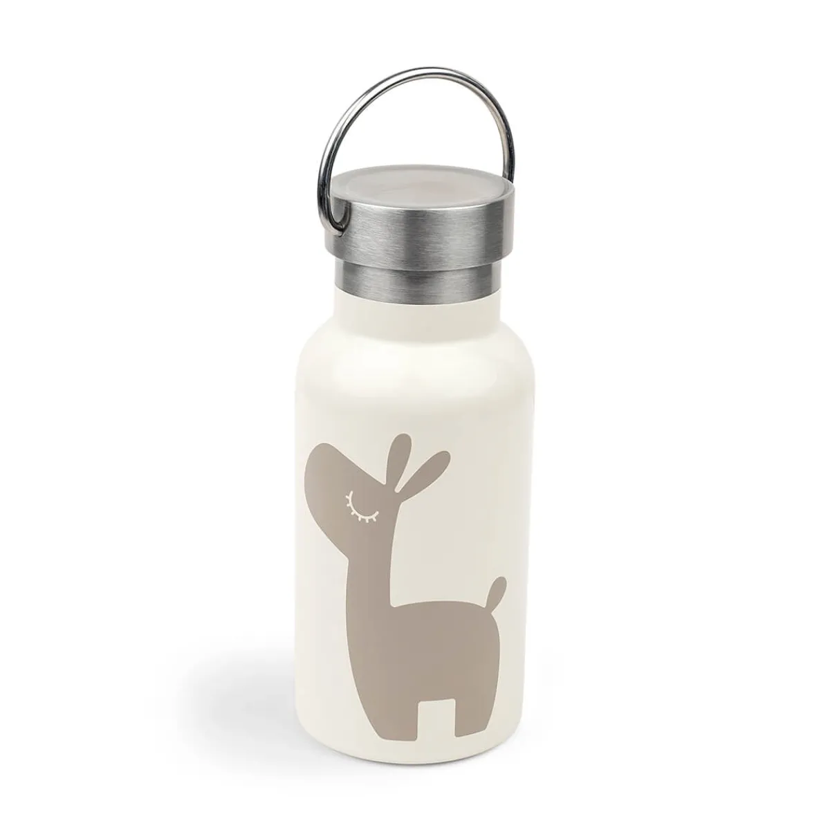 Den praktiske termo metal-flaske har en lys sandfarvet nuance og er dekoreret med Lalee i en mørkere nuance af beige.
