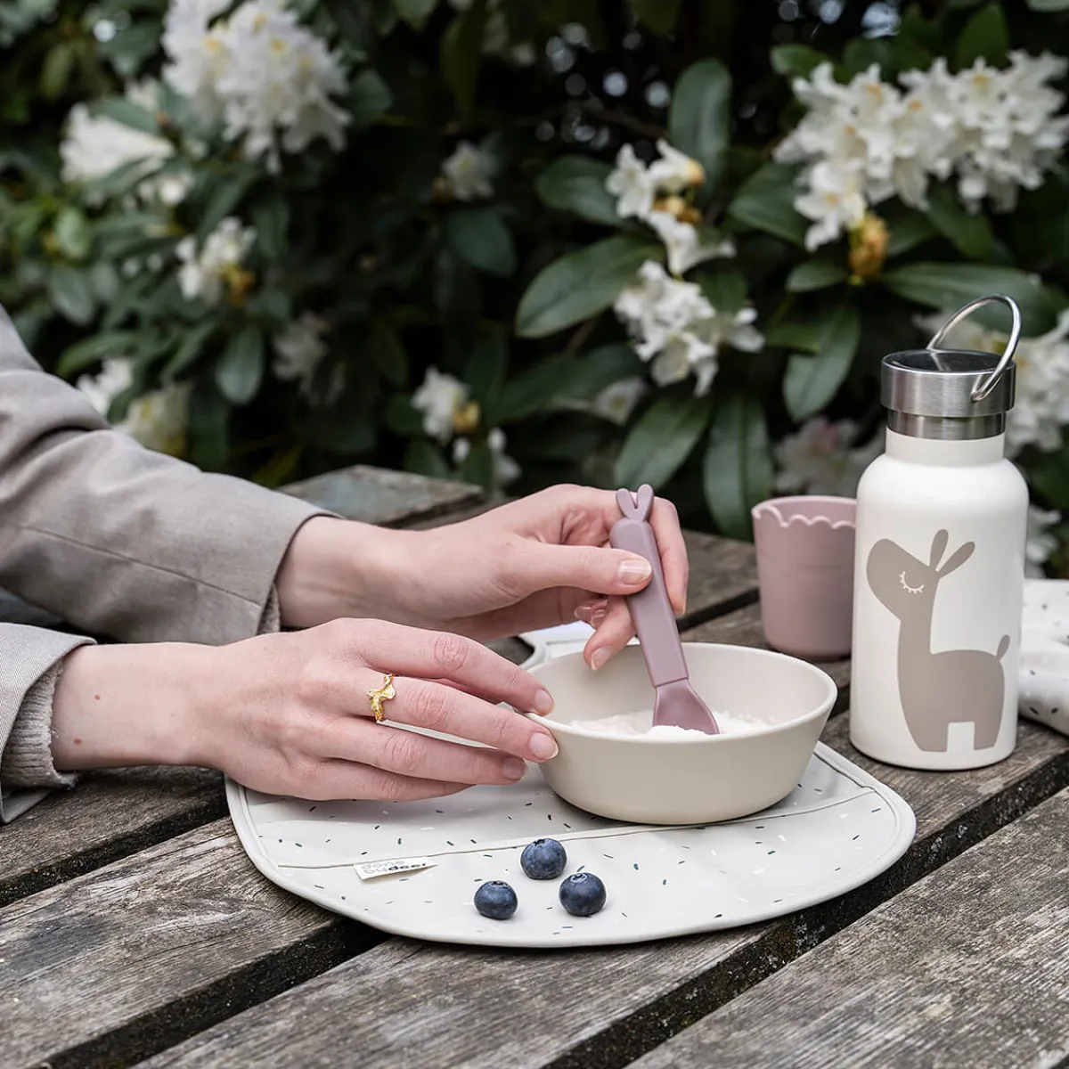Medbring Lalee termoflasken af rustfrit stål når I drager på eventyr! Fyld flasken med koldt vand til måltidet eller varmt til en sutteflaske eller en kop kaffe på farten. Koldt vand holdes køligt i op til 24 timer og varme drikke i op til 12.
